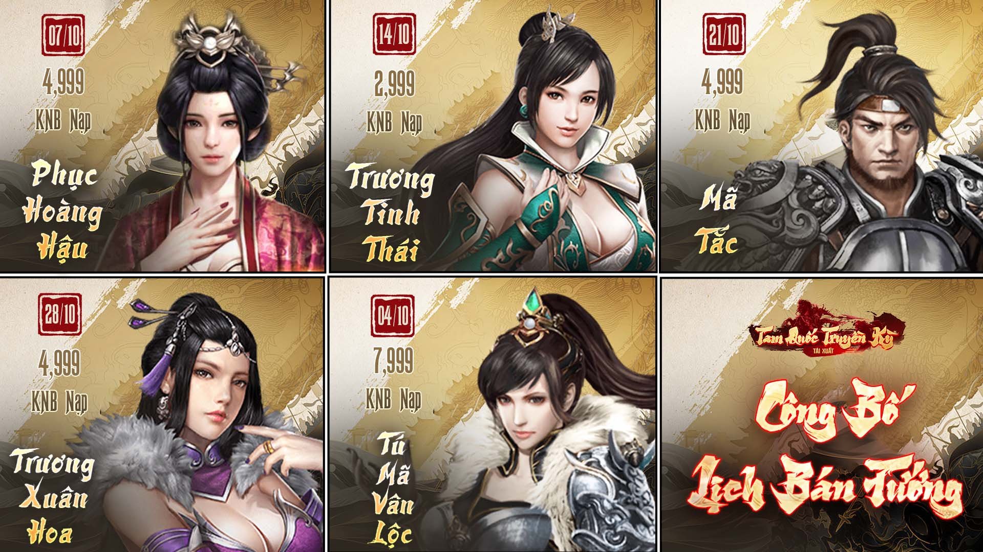 - Tướng được bán vào Thứ 3 hàng tuần, mỗi tuần sẽ bán 1 tướng khác nhau.